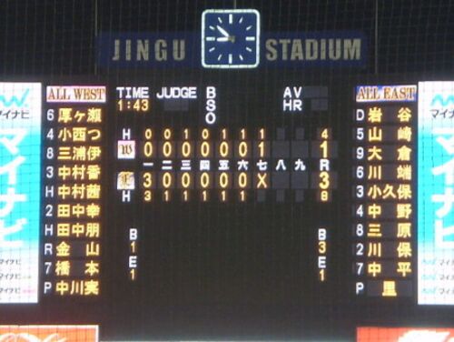 そして夜はJWBL。ここまで3勝3敗、今日勝ったほうが優勝というヴィクトリアシリーズの大一番です。 ALL EASTの先発渚は左腕から低めを丁寧に突き順調な立ち上がり。打線もALL WESTの先発宮原を攻め、初回1死1・2塁のチャンス。ここで川端妹が詰まりながらも…