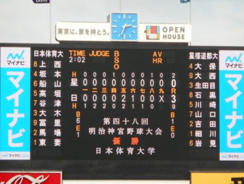 12年ぶりに六大学も東都も絡まないカードとなった決勝戦。星槎道都大が福田、日本体育大が東妻の先発で始まった試合は3回表に道都大が2死1塁とし、大保がライト線際に強い打球を放つも、日体大のライト冨里がダイビングキャッチ!ピンチを脱した日体大はその…