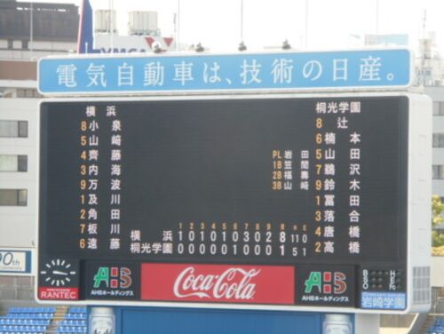 7年ぶり にハマスタで行われた春季県大会決勝を観てきました。ともに前日の勝利で関東大会出場が決まっている状況ながら、横浜が板川・桐光学園が谷村と背番号1同士の先発で始まった試合は初回の表、1死から山崎がライト中段に先制弾!3回は1死満塁からゴロ…