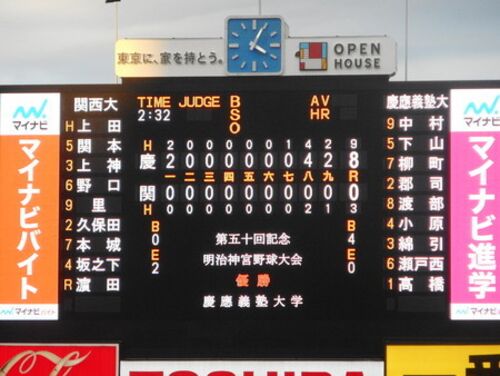 慶應と関西大による決勝戦。言わば双青戦の代理戦争で、今年1年の大学野球の締めに相応しい好カードになりました。関大の先発は森、伸びのあるストレートの前に初回中村・柳町と三振に打ち取られたものの、2死1塁から郡司が追い込まれた後のストレートを読み…