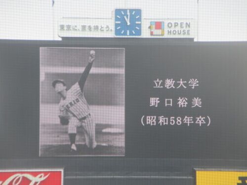 この日のレジェンド始球式は野口裕美さん。在学中は長らく優勝から遠ざかっていた立教を2位にまで押し上げ、卒業後はドラ1で西武に入団したことも有名ですが、東大にとっては悲願の初優勝を阻まれた相手。当時の主将だった大久保監督、1番打者だった石井助監…