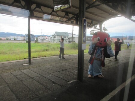 そして山線を走り終え、長万部に到着。ホームではかにめし弁当が売られており、新函館北斗か函館まで乗り通すと思しき人々が列を作っていましたが、私はここで下車。長万部町の公式キャラであるところのまんべくんと一緒に列車を見送り、さて街中へ…と向かったその背後をまんべくんにつけられていました。どうにか追跡を振り切り、駅近くの食堂へ。暖か~いてっぽう汁付きのカニめしセットをいただきました。